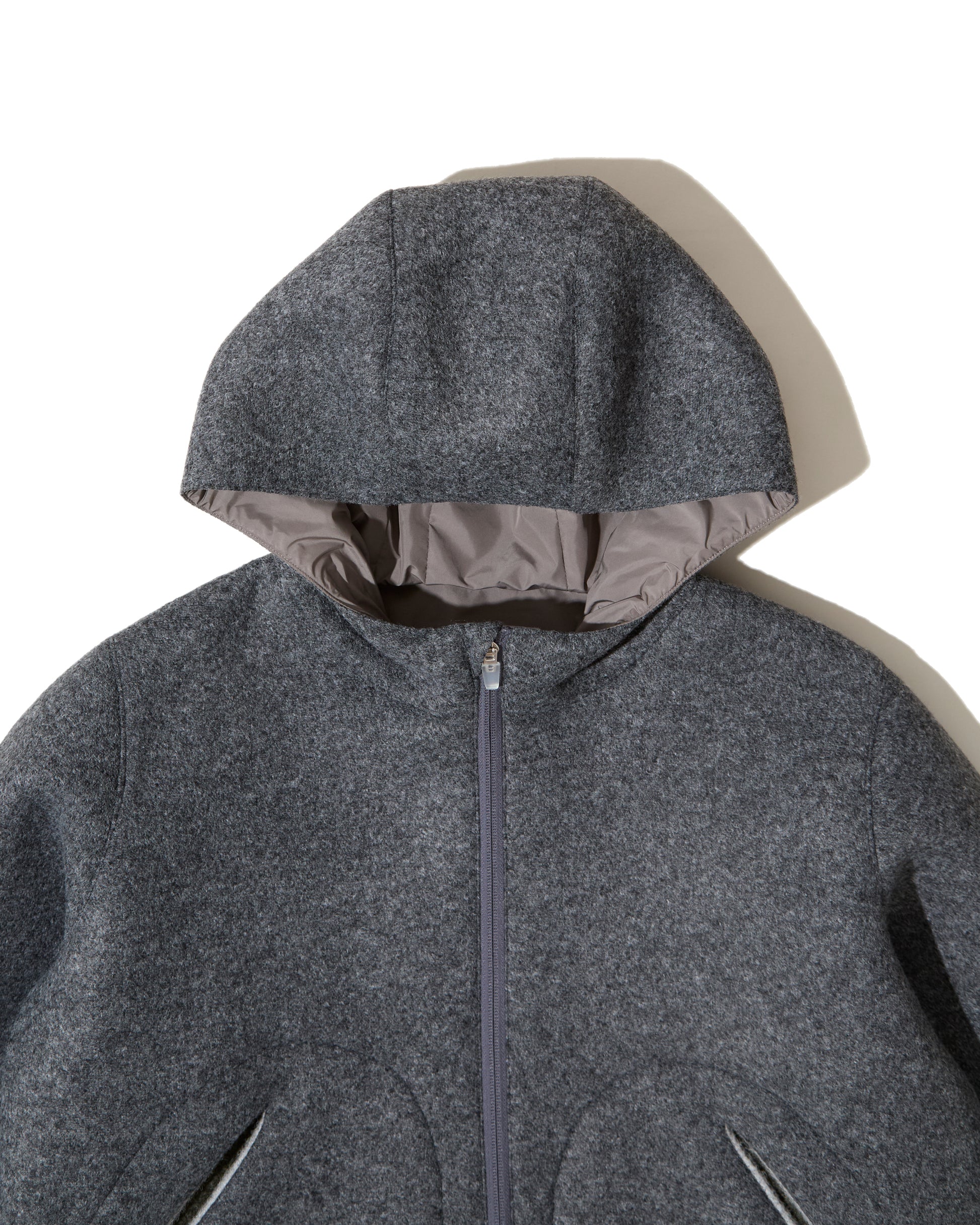 Hooded Incision Jacket - Melange Grey Bonded Wool