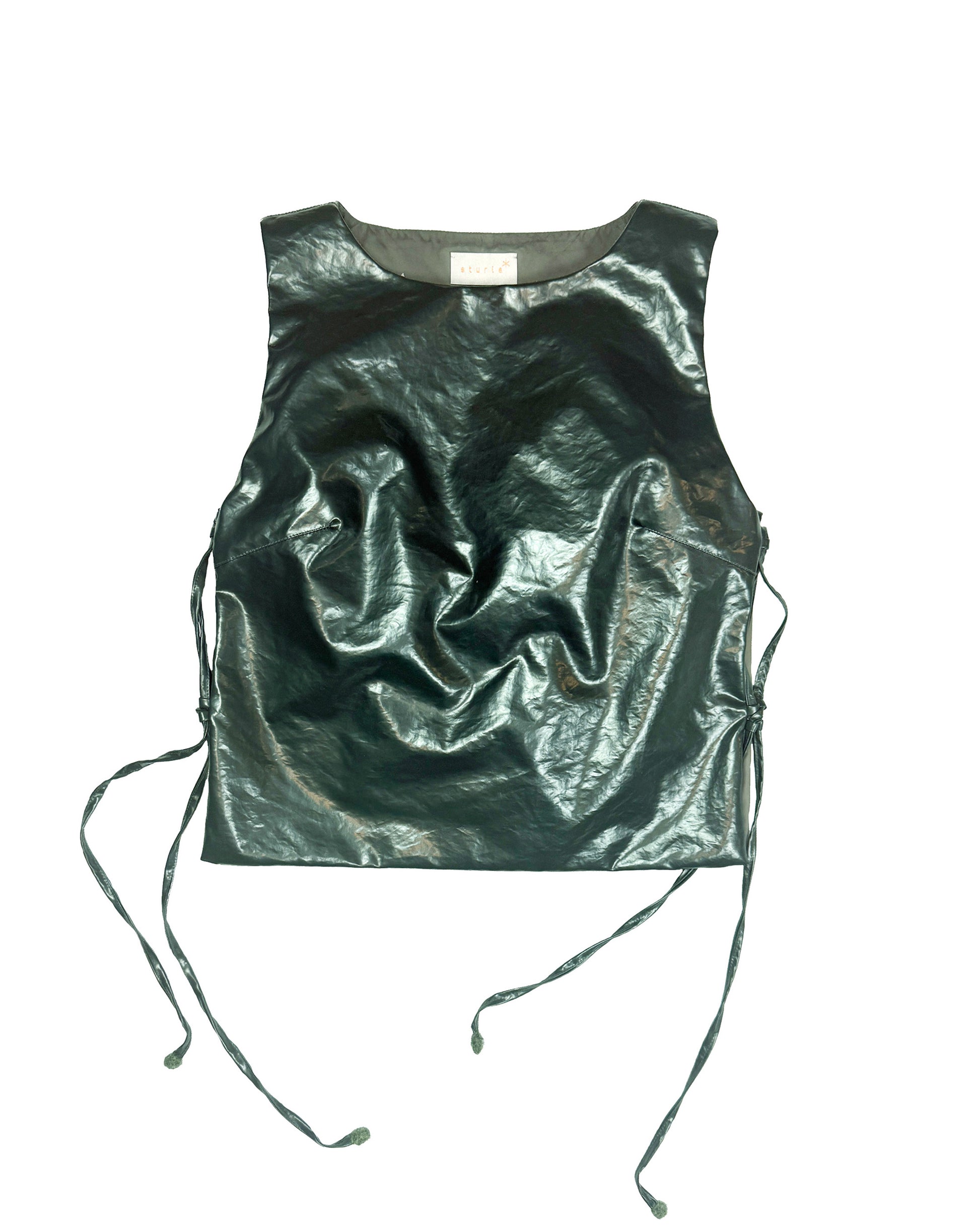 Side Tie Top - Bottle Green Laminated Nylon Canvas